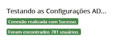 Se aparecer a mensagem: Conexão realizada com Sucesso, indica que o EPA conseguiu se conectar ao Active Directory e está apto a sincronizar os dados dos usuários.