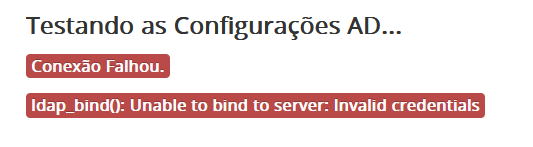 Neste caso é necessário que o cliente verifique com a equipe de TI, para que eles possam verificar a configuração da tela Configurar AD e validar se as credenciais configuradas nessa tela continuam corretas.